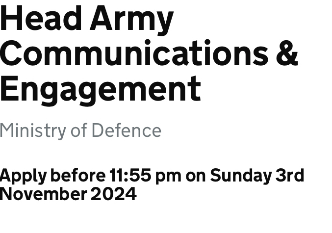 The Army has just advertised to fill the post of Head of Army Communications and Engagement.